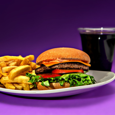 Pihvi, cheddar (sis. laktoosi), ketsuppi, salaatti, tomaatti, paprikamajoneesi