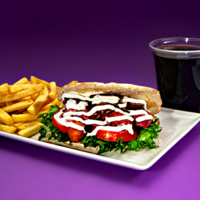 Aterialisä (hinta +4€) sisältää hanajuoman + ranskalaiset.