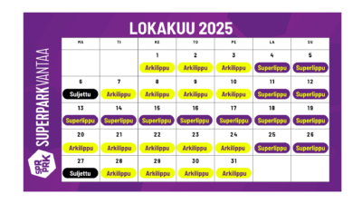 Puisto aukeaa tapahtuman jälkeen 12.30 ja sulkeutuu 18.00