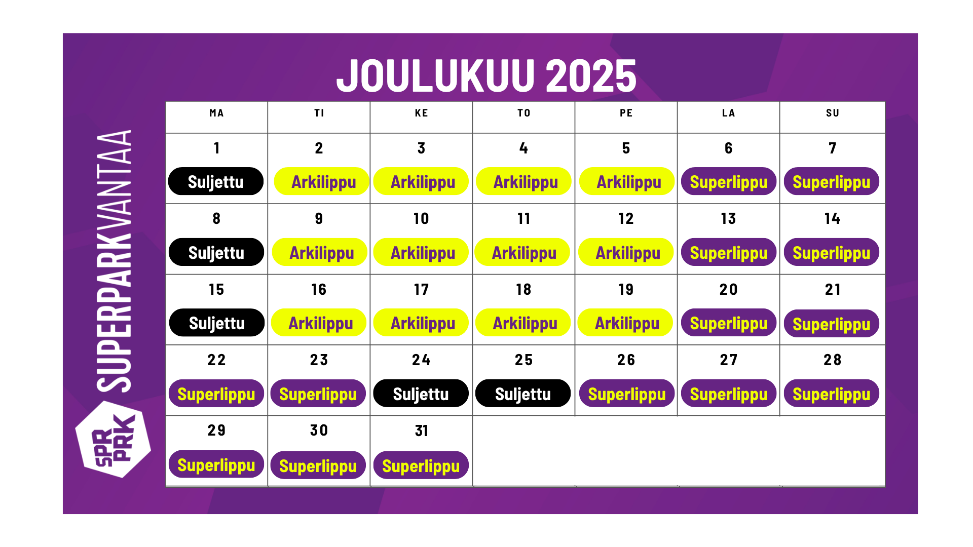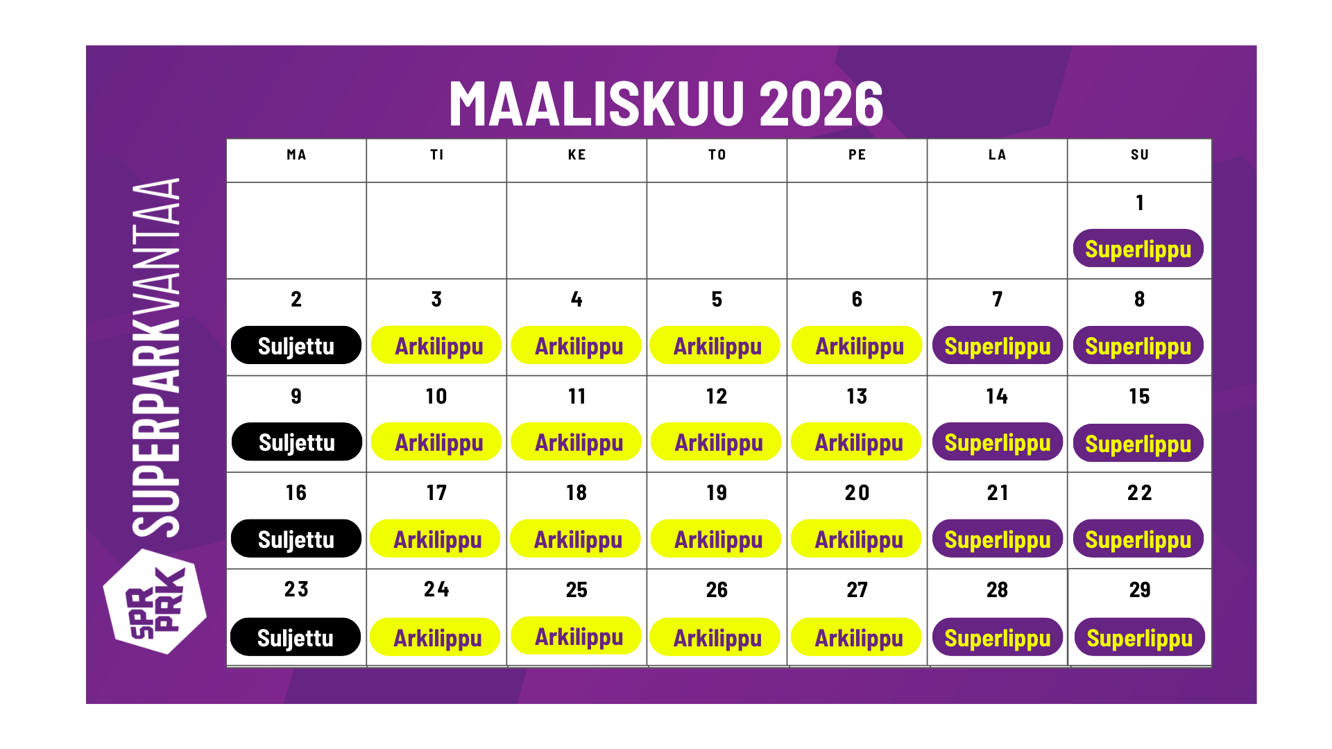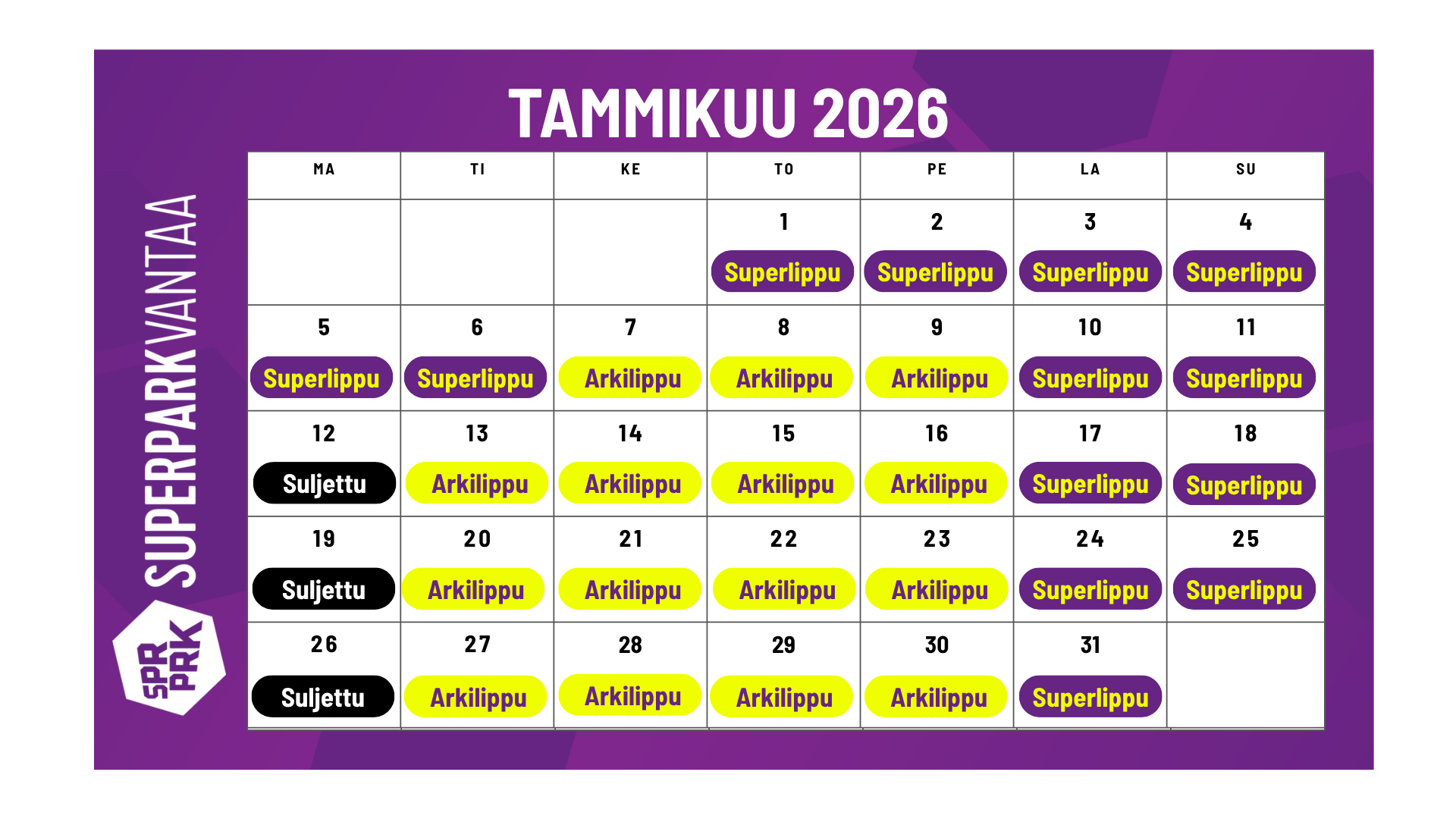 Ravintola avoinna puiston aukiolojen mukaisesti.